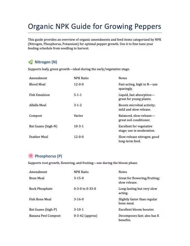 Organic Amendments NPK chart